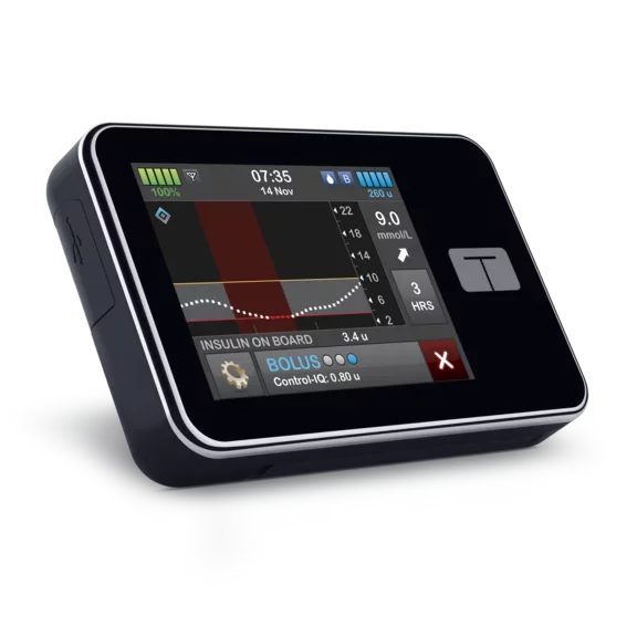 The t:slim X2 integrates directly with Dexcom G6® Mobile Continuous Glucose Monitoring (CGM). The use of CGM is proven to give better management, so the option is there if you need it.