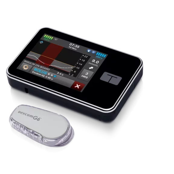 The t:slim X2 Insulin Pump integrates directly with Dexcom G6® Mobile Continuous Glucose Monitoring (CGM), an approved system to let you make treatment decisions without pricking your finger.