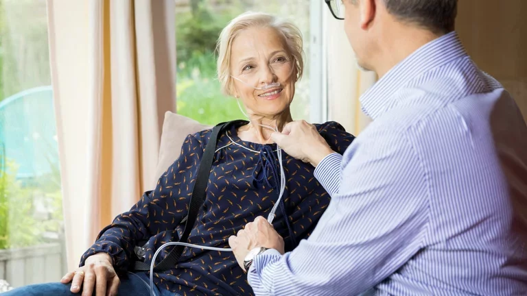 When COPD progresses to chronic respiratory failure and constitutes a disabling condition for the person, the physician may prescribe long-term home oxygen therapy . At this advanced stage, emphysema in the lungs leads to blood oxygenation problems. Unable to guarantee gas exchange with inspired air, the alveoli no longer allow the delivery of oxygen to the body (hypoxemia).